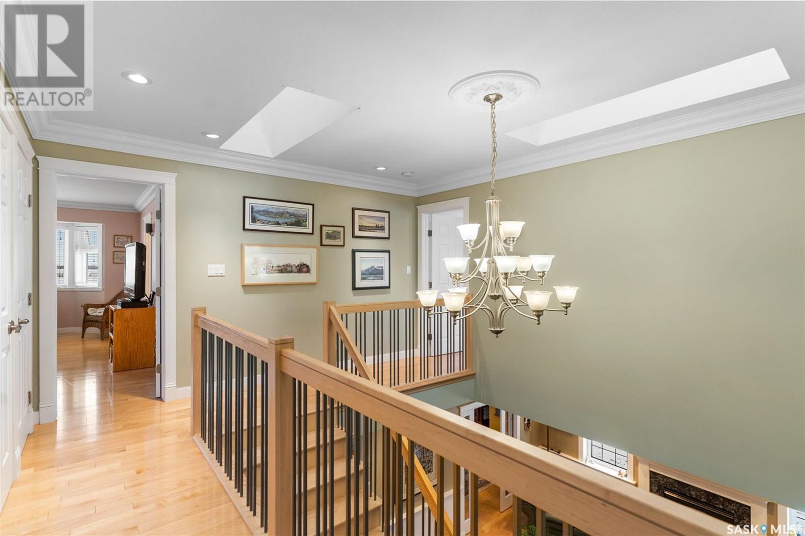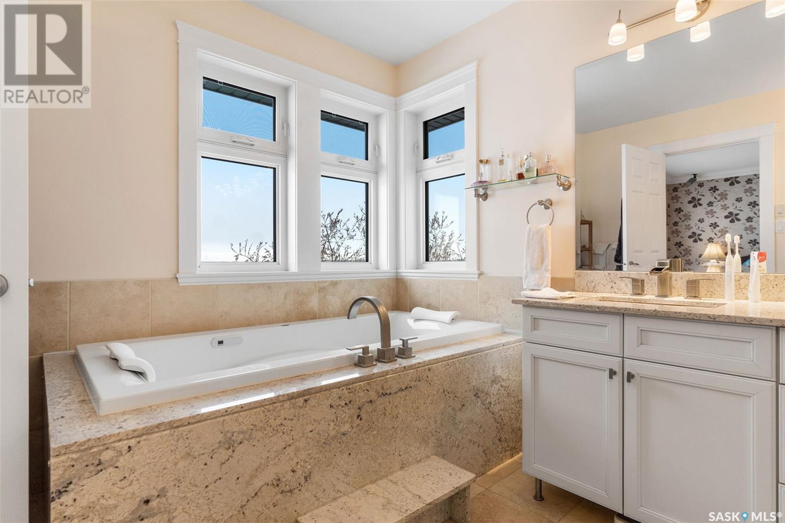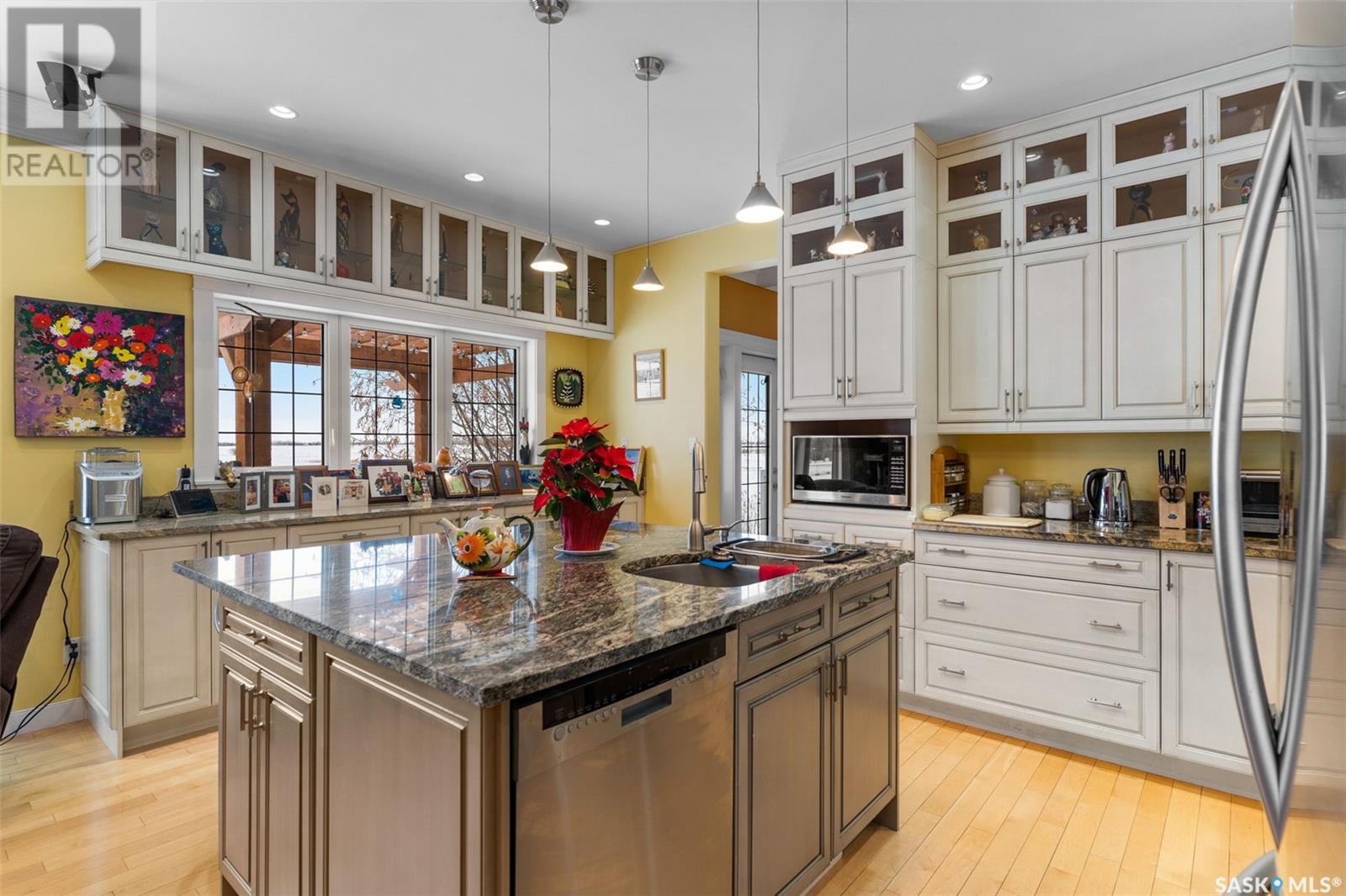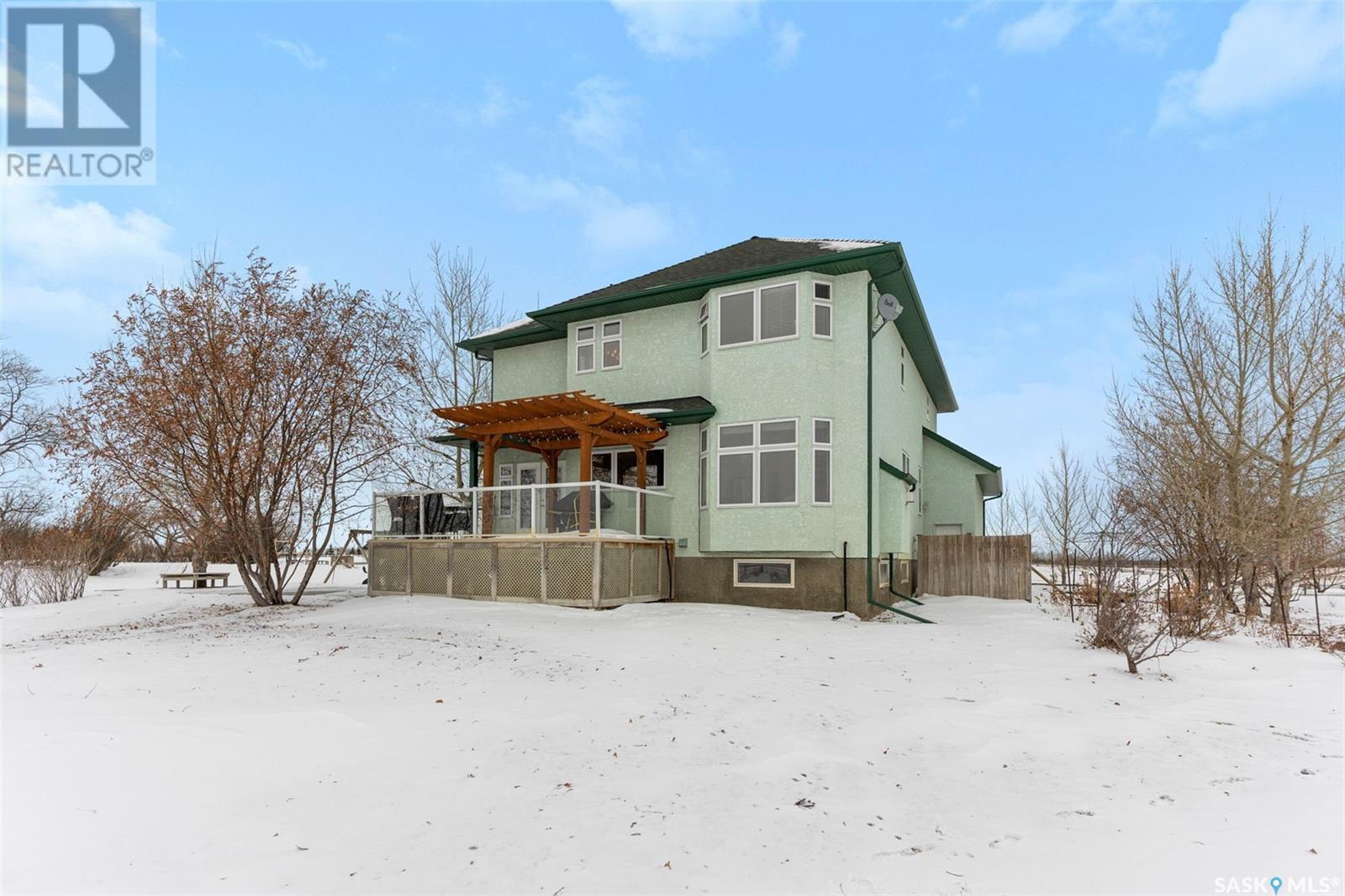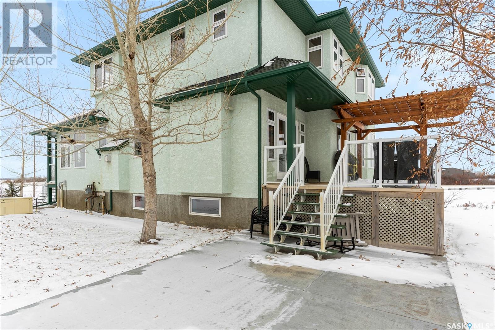 Prime location! Minutes from Greenbryre Golf Course, 10 acres of scenic acreage dev, 2509 sq feet custom designed 2 story property, 5 baths, 4 beds plus 30 x 40 sq foot heated shop / Quonset with concrete floor. Gorgeous traditional home with a flowing floor plan including a rear entrance from the deck, leading to a formal living room with gas fireplace, a separate dining room with coffered ceilings, plus a family room off the kitchen with another gas fireplace. Beautiful high-end kitchen with numerous solid wood cabinets to the ceiling, an island with granite counters, loads of work space and entertaining space in the chef’s kitchen! Laundry and 2 pc bath also on main. Hardwoods, crown moulding, and quality tile work flooring throughout. Second floor has 3 large bedrooms, all with ensuites and walk in closets, with an open loft style hallway overlooking main! Extra large master bedroom, with a 6 pc ensuite. Basement is fully developed with a games area, bedroom, Family room, wet bar, den, full bath with in floor heat plus mechanical and storage. Attached heated garage ,with dropdown stairway to upper storage area. Geothermal system, triple glazed windows, spray foam insulation including roof pitch, u/g sprinklers run from well, city water, speakers, geodesic greenhouse dome, kids play structure, back up gas generator w/ auto transfer switch, 9 foot ceilings on all levels. Shop is heated and insulated, with wood stove, plus a gas heater, concrete drive, 50’ well for irrigation. Patio, deck, pergola, garden boxes, shed, grassed. Gas line easement on land for the gas hookup for the residence. Home heating system is geothermal preheat system. Backup nat gas powered generator $5,999 (2021) (id:2469)